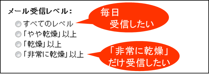 (非常に乾燥、乾燥、やや乾燥、すべて配信の4段階)